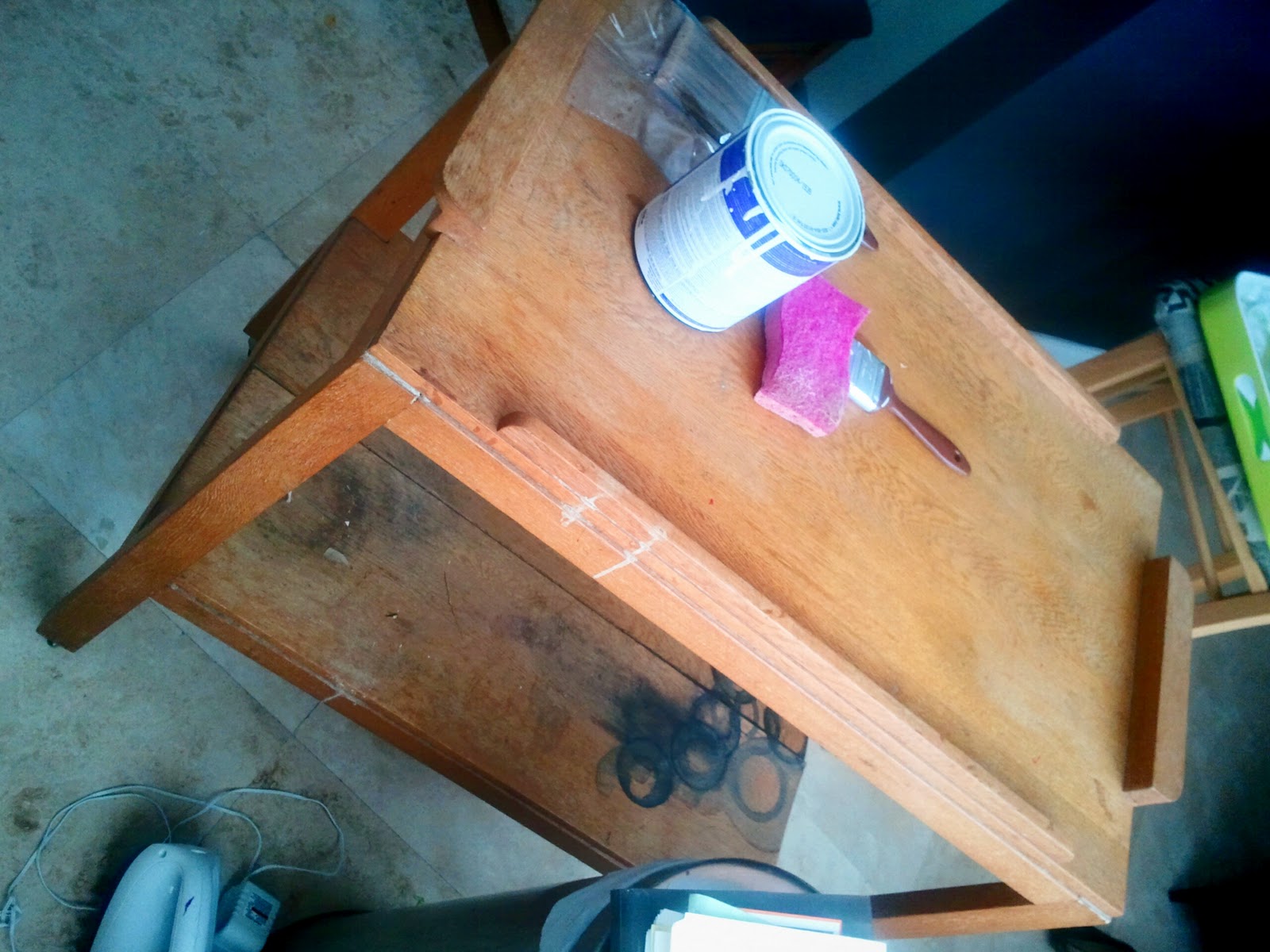 - First I nailed down some loose boards on the bottom that were warped from water, then lightly sanded the wood and stains. Then I removed the wheels and painted with primer (extra primer on stained parts).